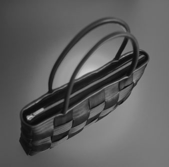 Die glänzenden Autogurte geraten in ein Spannungsverhältnis zu dem natürlichen Material Leder und erfahren durch diese raffinierte Kombination eine Veredelung. So manchem Betrachter erschließt sich diese leicht schimmernde und elegant anmutende Tasche erst auf den zweiten Blick. Zweckentfremdete Sicherheitsgurte üben sich im Materialspiel mit feinstem Leder und demonstrieren, dass Strapazierfähigkeit und Eleganz sich nicht ausschließen müssen.